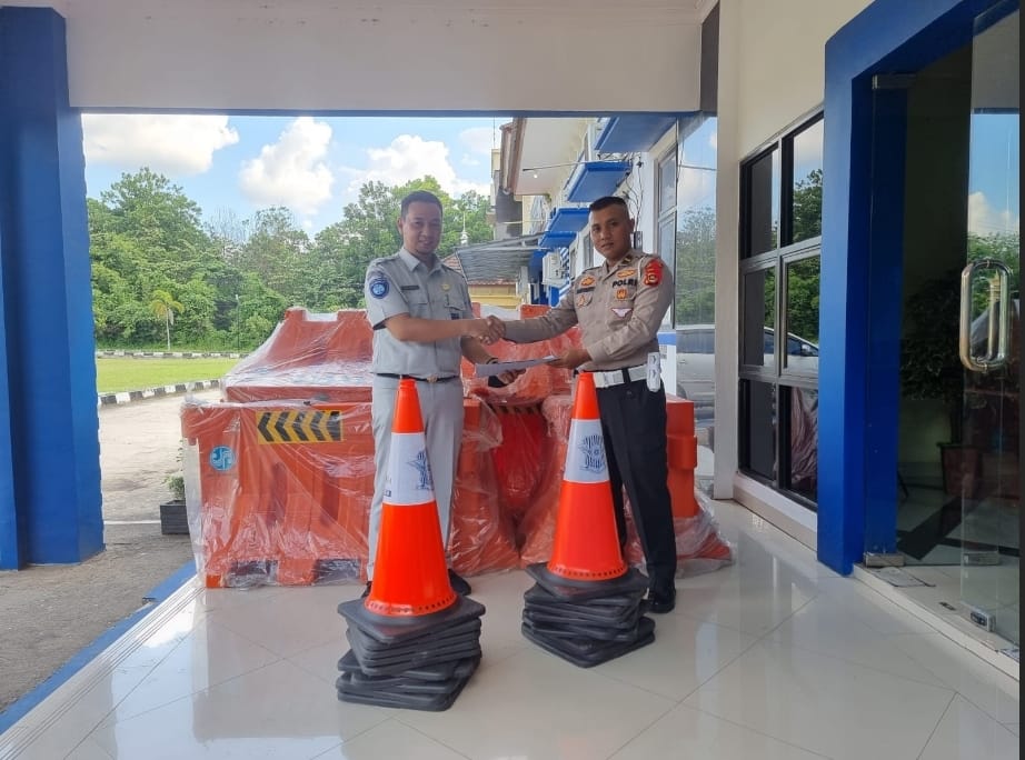 Dalam upaya mendukung kelancaran dan kesuksesan Operasi Ketupat – Musi 2023 pada wilayah Sumatera Selatan khususnya dalam hal pencegahan kecelakaan lalu lintas dan pengaturan kelancaran berlalu lintas Jasa Raharja Cabang Sumsel yang di wakili Penanggung Jawab Jasa Raharja Prabumulih memberikan bantuan sarana dan prasarana berupa water barrier dan Traffic cone kepada unit Lalu Lintas Polres Prabumulih. Berkesempatan menerima langsung Kanit Gakkum Polres Prabumulih, Ipda Pariyanto SE, MM sarana dan prasarana tersebut. Kasat Lantas Polres Prabumulih AKP Muthemainnah SH sangat mengapresiasi upaya Jasa Raharja Cabang Sumsel dalam mensupport kelancaraan Operasi Kemanusiaan Ketupat – Musi 2023 ini diharapkan dengan adanya bantuan ini dapat membantu dalam segi pengaturan arus lalu lintas dan membuat pengendara kendaraan bermotor agar lebih tertib dan mencegah terjadinya kecelakaan lalu lintas jalan.Kepala Cabang Jasa Raharja Sumsel, Abdul Haris menyampaikan Jasa Raharja berperan aktif dalam mensupport langkah langkah pencegahaan kecelakaan lalu lintas seperti pada kesempatan saat ini adalah memberikan bantuan kepada pelaksana pengaturan lalu lintas unit Lalu Lintas Polres Prabumulih berupa water barrier dan traffic cone, Semoga dengan sedikit bantuan sarana dan prasarana ini dapat dioptimalkan dalam hal pencegahan kecelakaan lalu lintas oleh Polres Prabumulih. tutup Haris.