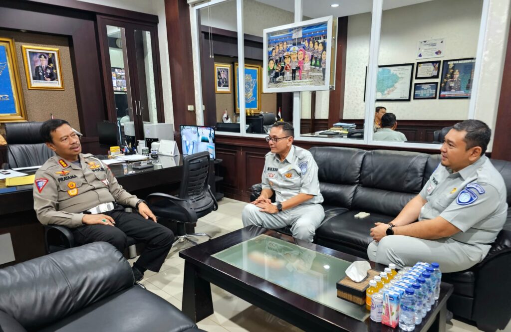 Palembang (24/08/23) – Kepala PT Jasa Raharja Cabang Sumsel, Mulkan di dampingi Kepala Bagian Operasional, M Erwin Setia N, Kasubag Sumbang Wajib dan Humas, Dodot Suhardo, pada Rabu, 23 Juli 2023 melakukan kunjungan koordinasi bersama Direktur Lalu Lintas Polda Sumsel, Kombes Pol A Pratama. SH. SIK. MH, Bertempat di ruang Kerja Direktur Lalu Lintas Polda Sumsel menerima langsung secara dekat kunjungan Kepala Cabang PT Jasa Raharja Sumsel.