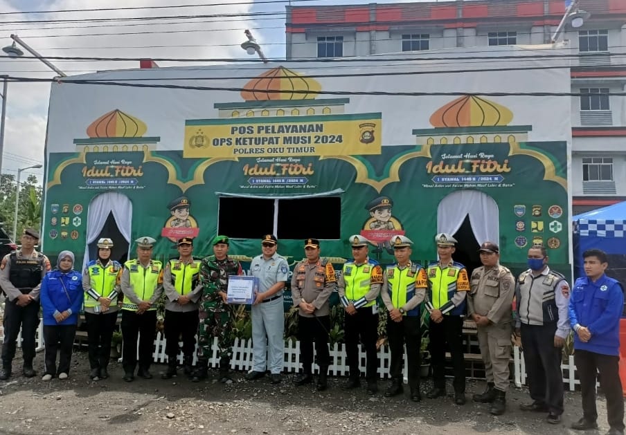 OKU Timur – Pada Senin, 08/04/2024 Kepala perwakilan Jasa Raharja Baturaja, Krisnoadi Kusumo Nugroho beserta tim menyerahkan bantuan kepada Pos Pelayanan Lebaran 2024 di POS PAM Pasar Martapura Kabupaten OKU Timur. Kegiatan ini merupakan bentuk aksi simpatik serta kepedulian Jasa Raharja dalam mendukung kelancaran serta keamanan arus mudik lebaran tahun ini. Giat aksi simpatik dihadiri langsung oleh Kapolres OKU Timur AKBP Dwi Agung Setyono SIK, MH., Dandim OKU Timur, Dinas Perhubungan, dan Kasat Lantas OKU Timur beserta jajaran.
