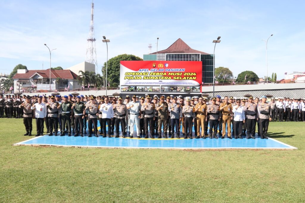 Apel Operasi Zebra – Musi 2024 pada pagi hari ini dipimpin oleh Wakapolda Sumsel Brigjen Pol M.Zukarnain. Pada kesempatan ini disampaikan sasaran Operasi Zebra Musi 2024 yang meliputi segala bentuk yang berpotensi menyebabkan pelanggaran, seperti pengemudi dibawah umur yang tidak memiliki SIM, pengemudi yang menggunakan ponsel saat berkendara baik motor maupun mobil, pengemudi yang melawan arus, pengemudi yang melebihi batas kecepatan, berkendara dalam pengaruh alkohol atau obat-obatan berbahaya, pengemudi sepeda motor yang tidak menggunakan sabuk pengaman (safety belt)