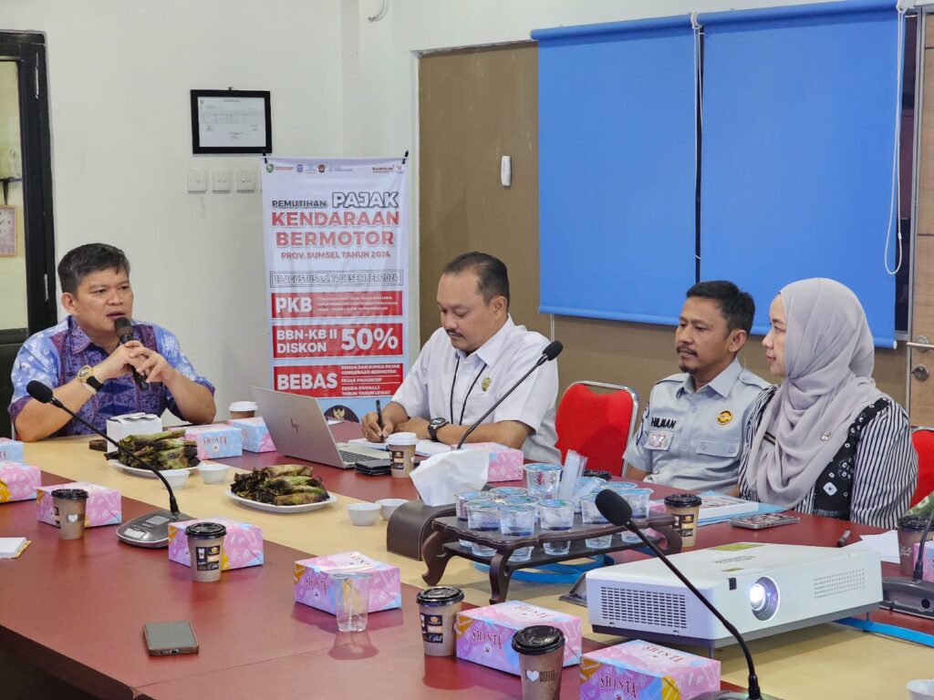 Palembang – Dalam upaya terus meningkatkan pelayanan dan penerimaan pajak kendaraan bermotor di Wilayah Samsat Kota Palembang di Sumatera Selatan, Kasubag SW dan Humas, Dodot Soehardo Utomo bersama Penanggung Jawab Jasa Raharja Samsat Palembang I, Syafwan Hilman bersama Kepala UPT, Kasie Penagihan dan Kasie Penetapan UPT Samsat Palembang Raya wilayah Kota Palembang mengadakan Rapat yang membahas tentang langkah strategis Inisiatif dan upaya dalam peningkatan penerimaan PKB dan SWDKLLJ di wilayah Kota Palembang secara khusus dan dapat diterapakan pula pada UPT Samsat Se Provinsi Sumsel.
